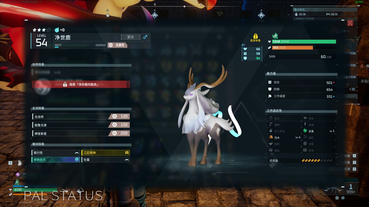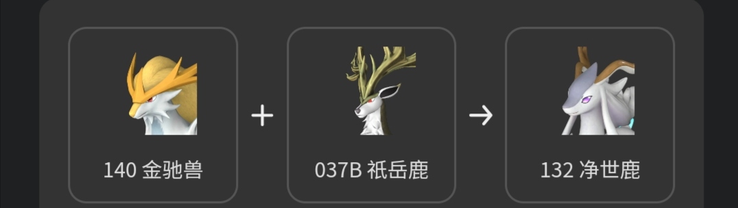 僅有一條配種公式,不過木頭在遊戲裏面使用量感覺不多,前期可用其他各種帶伐木的帕魯代替,後期有想法了再配種淨世鹿,這裏推薦配種出金馳獸然後再去禁獵區捕捉祇嶽鹿