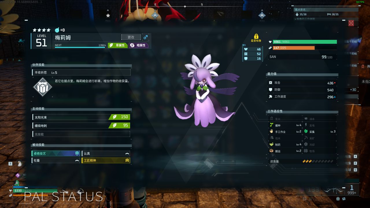 樓主因爲是已經培育過打工帕魯,所以天墜之地更新後只通過棉悠悠補了一下新出的卓絕技藝詞條,打工人帕魯需要的工作詞條分爲兩種:非暗系帕魯需要卓絕技藝、工匠精神、社畜和夜行性/吸血鬼,而暗系帕魯因自帶晝夜打工特性,所以將夜行性/吸血鬼更換爲認真。(夜行性和吸血鬼都是讓帕魯可以通宵作業的詞條,晚上上牀睡覺的玩家可換爲認真詞條)