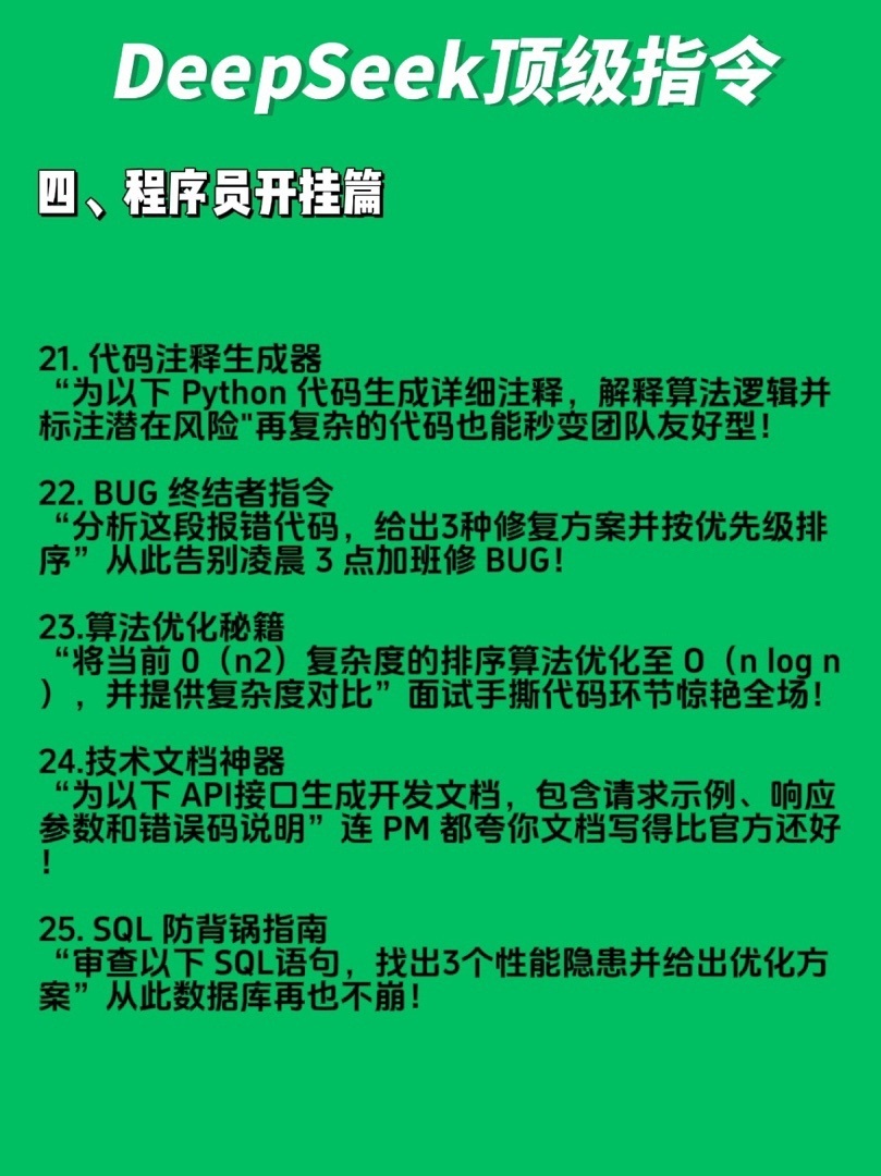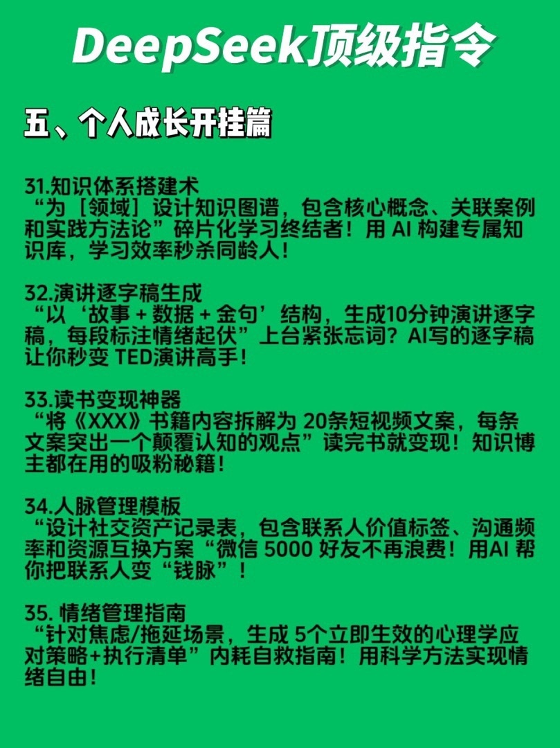 DeepSeek這些指令真的能挖掘出它超強的潛力,大家趕緊用起來,效率和創意雙雙起飛!💪