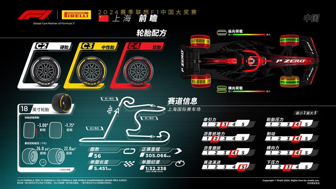 引申閱讀:F1比賽使用的是倍耐力(Pirelli)提供的幹胎和溼胎。幹胎分爲3種選擇:軟胎(紅色)速度快、抓地力強,但磨損快;中性胎(黃色):平衡型,速度和耐久適中;硬胎(白色):耐久性強但速度慢。溼胎分爲半雨胎和雨胎。
