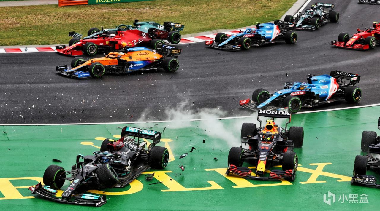 看F1比賽,發車可以說是最大的看點,甚至沒有之一,因爲這可能是所有車手超車的最佳機會,比賽開始時,所有賽車靜止排列,差距最小,五盞紅燈熄滅比賽正式開始,第一圈尤其是第一彎道(一般成爲1號彎),車手們扎堆衝刺,位置爭奪最激烈,數據上統計,第一圈的超車次數往往佔整場比賽的30%-50%,而且伴隨着大量的失誤翻車,比如起步打滑、碰撞甚至退賽(這裏點名小周和博塔斯),第一圈的事故率遠超其他階段(點名博塔斯2021年匈牙利站一杆清檯)。