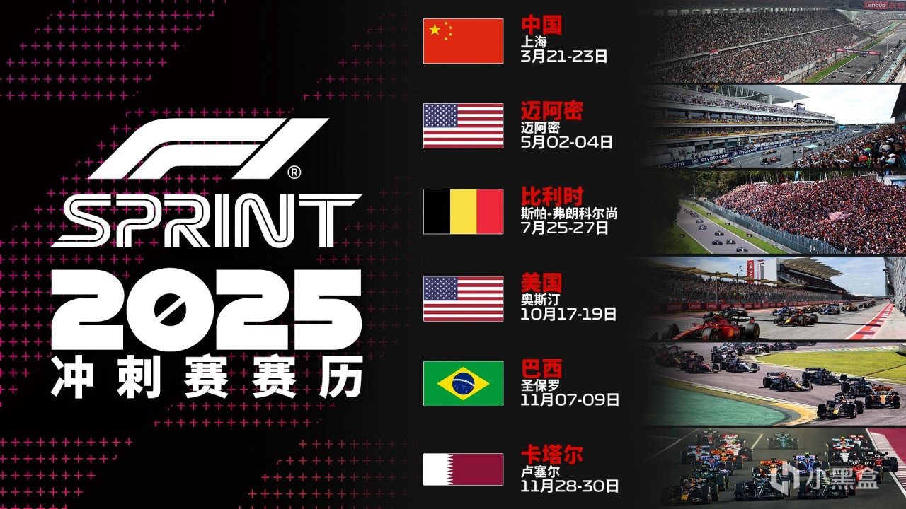 引申閱讀:24場大獎賽並非都是按照以上規則比賽,2021賽季,爲了照顧週五和週六的熱度,FIA引入了更激烈的衝刺賽,今年是衝刺賽賽制的第五年,中國站在24年、25年都是衝刺賽。對比常規比賽,衝刺賽由三次練習賽,縮減爲週五的一次,同時在週五新增衝刺賽排位賽,分爲SQ1、SQ2、SQ3三節比賽,比賽結果決定衝刺賽的排位,週六上午進行衝刺賽(100公里,約30分鐘,無強制進站),前八名獲得積分(8分至1分),衝刺賽結果不影響正賽發車順序,與大獎賽獨立,週六下午的排位賽和週日的正賽按照正常流程進行。