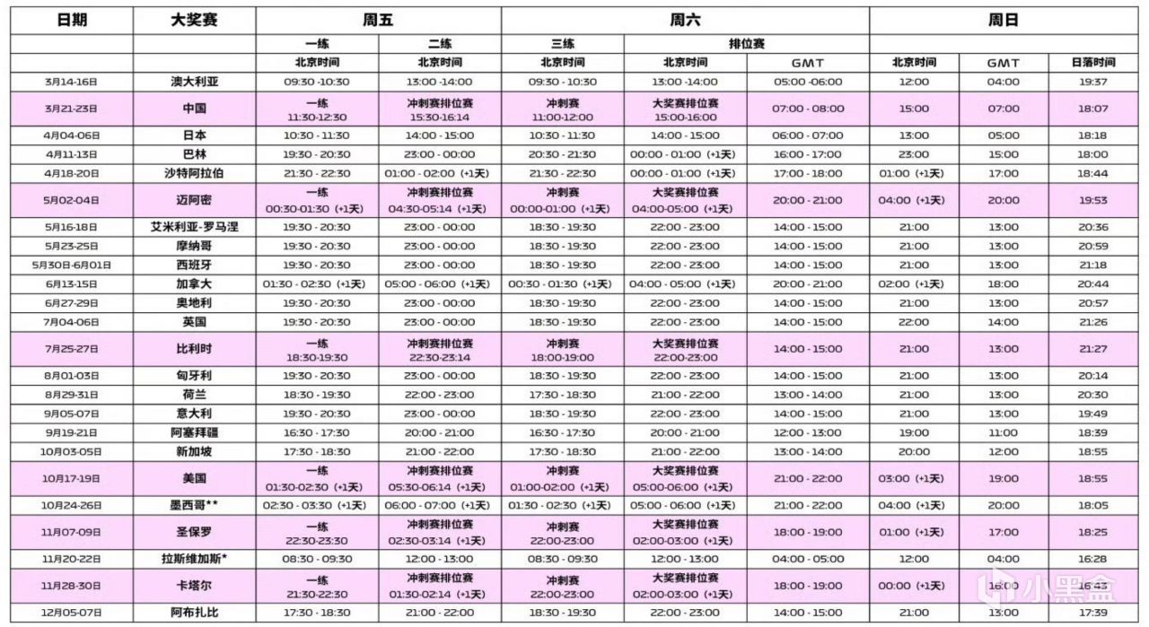 2025賽季F1比賽具體時刻表