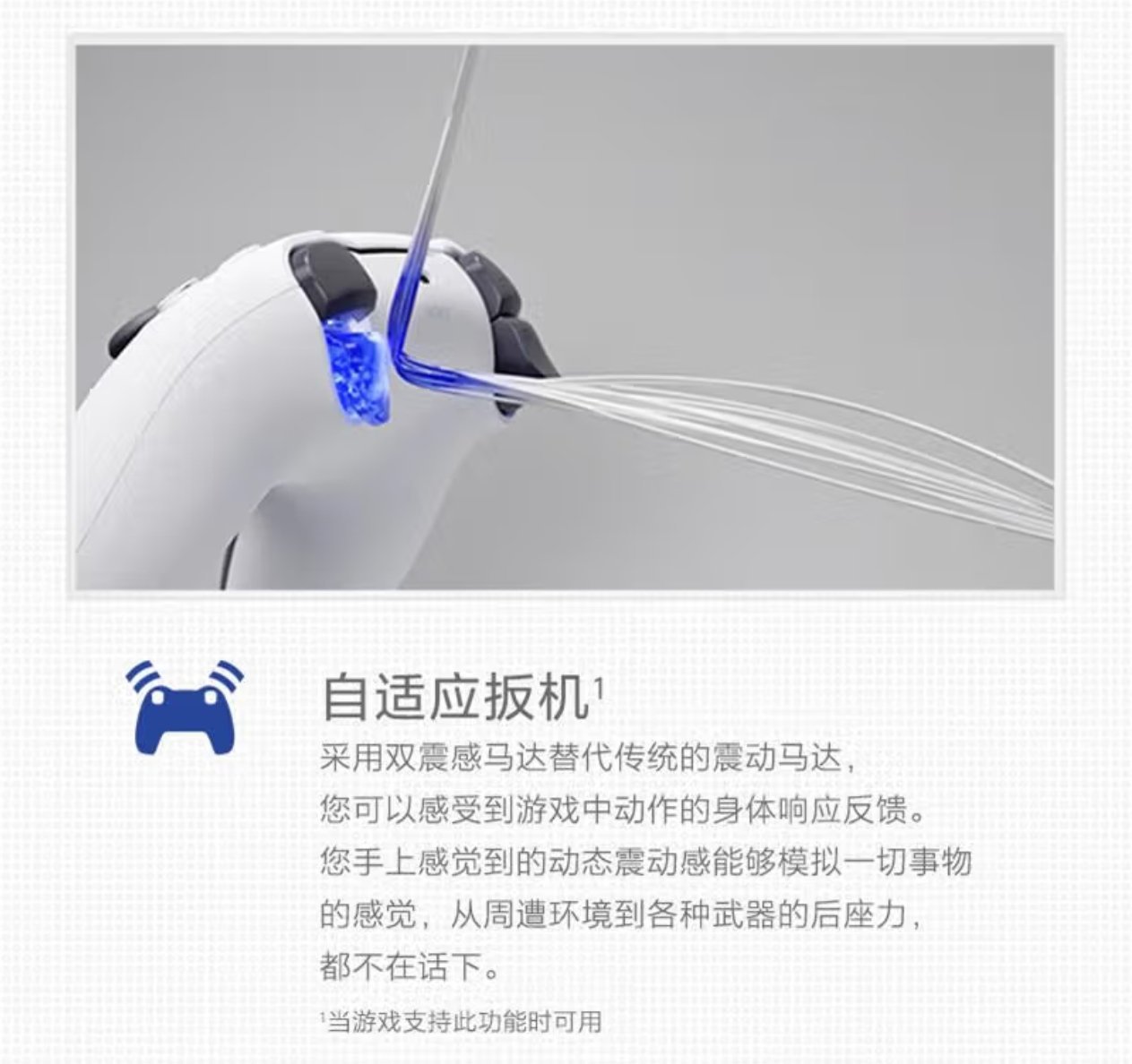 其革命性的自適應扳機通過可變阻力齒輪系統,在《使命召喚》中可精準模擬不同槍械的扳機阻尼與後坐力層次,而Foster音圈馬達帶來的觸覺反饋相比傳統轉子馬達細膩度提升顯著,例如《死亡迴歸》中不同地表材質的震動差異極具沉浸感。但需注意目前並非全部PC遊戲深度適配該功能,多數場景仍依賴基礎震動模式。