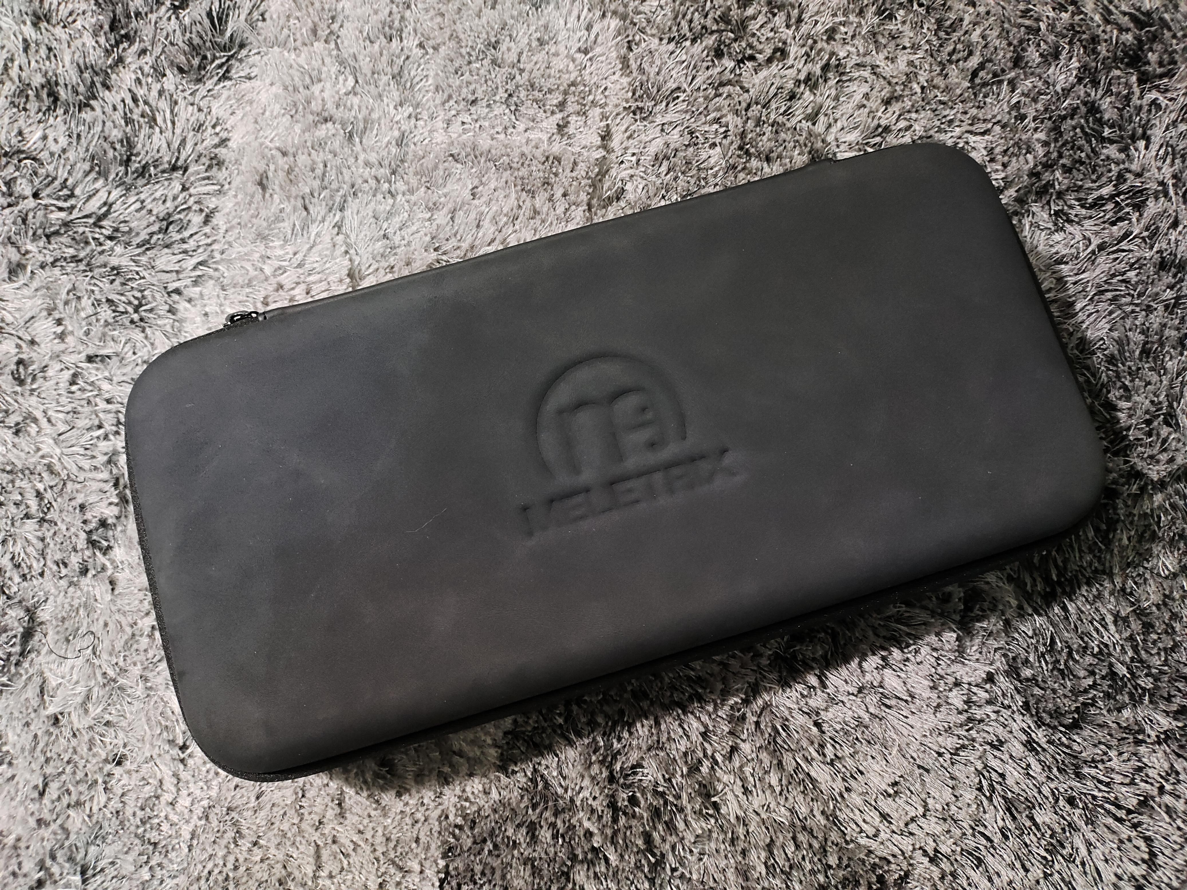 入手可以看到,键盘的外包装是一款防革的小包,表面印着的Meletrix是无缺量产方面工作室的标志。打开内部可以就看到里面放的键盘组装所需要的所有零件和工具。