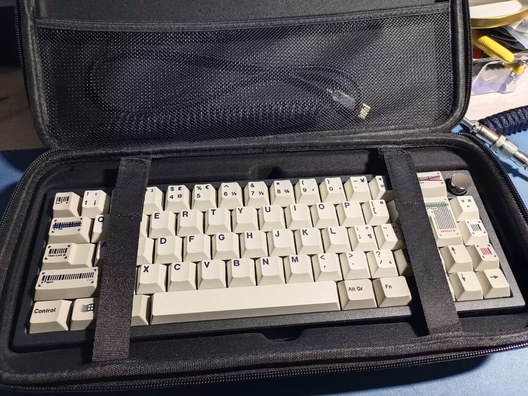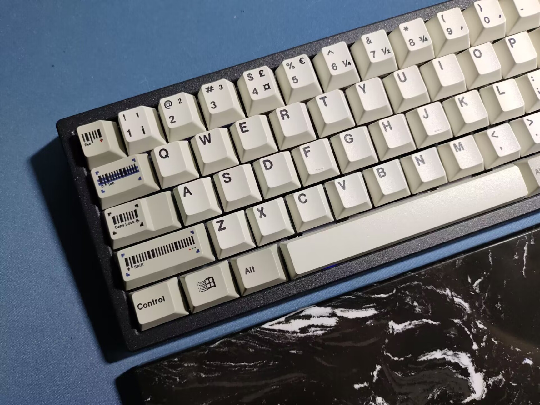 条形码键帽的设计还是非常出彩的,相比于其他的复古键帽,其以条形码键作为功能区部分设计,与超市同款的条形码即复古又活泼,感官上更为高级,并且神婆的复古的键帽素材也很精致,值得购买。