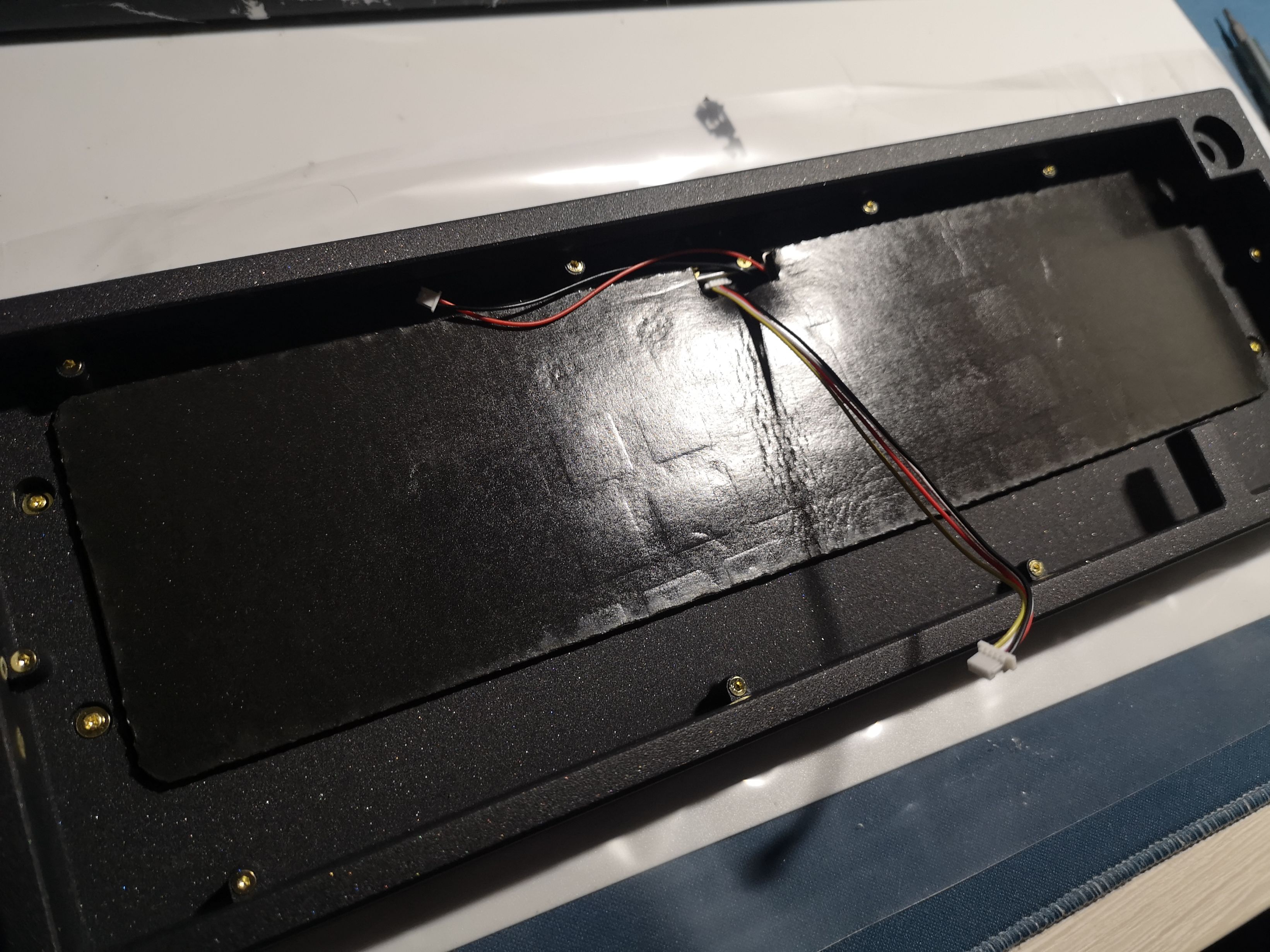 当然如果这里不想塞电池也可以使用自带赠送的poron棉,这样可以填满所有空隙,减少键盘敲击产生的空腔。