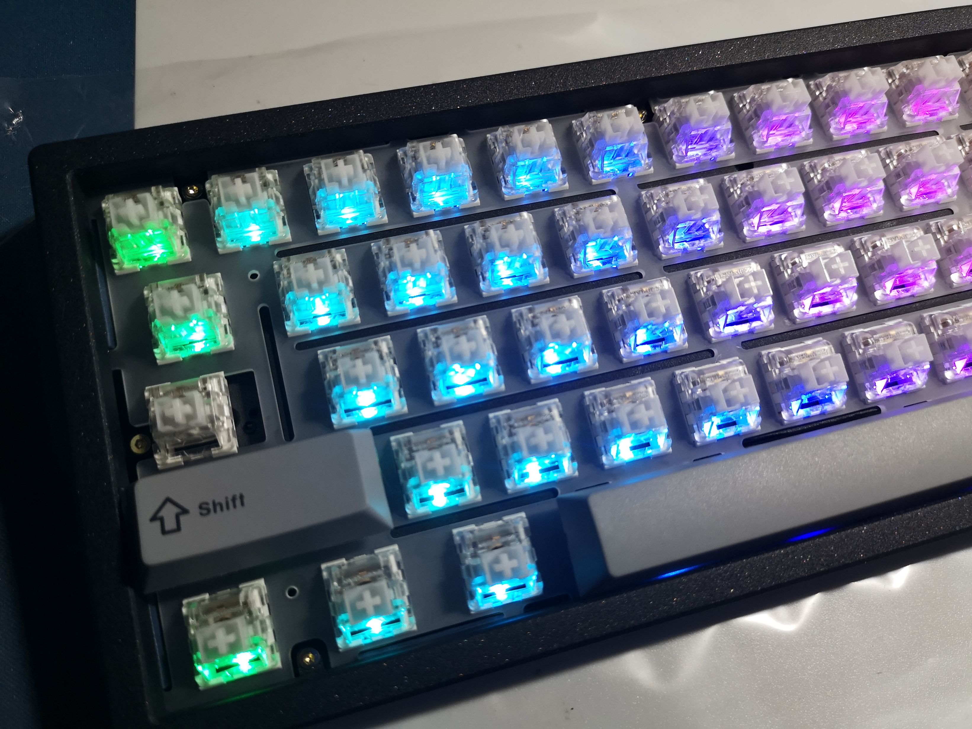 大键调校在这时候就结束了,记得如果选用7回,回车地方的卫星轴是竖装的,如果想选用分裂空格,也请注意这两个两u空格的位置。