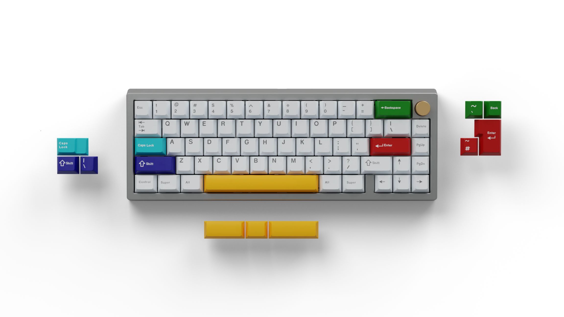 zoom65v2是一个65%多变配列的pcb设计,回车可变为7回,退格和shift都可以变成两个按键。空格也做了可分裂设计,大小写也可换为阶梯键。这样对比普通65%配列键盘,其可玩性更高,可以适配更多种键帽。