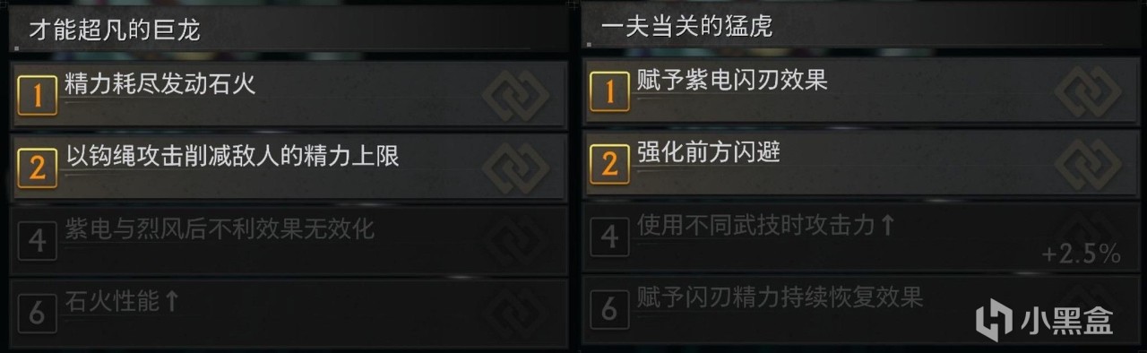 受到的傷害,使用石火時恢復精力,單獨挑戰時防禦力,精力恢復速度,閃刃後精力恢復