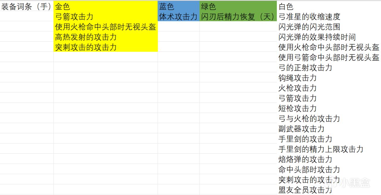 詞條也分金色、藍色、綠色、白色這四種,由於這代詞條的上下限沒有差的這麼多,而且裝備可以直接轉移詞條,所以有對應有用的詞條就行,不用管數值的高低。