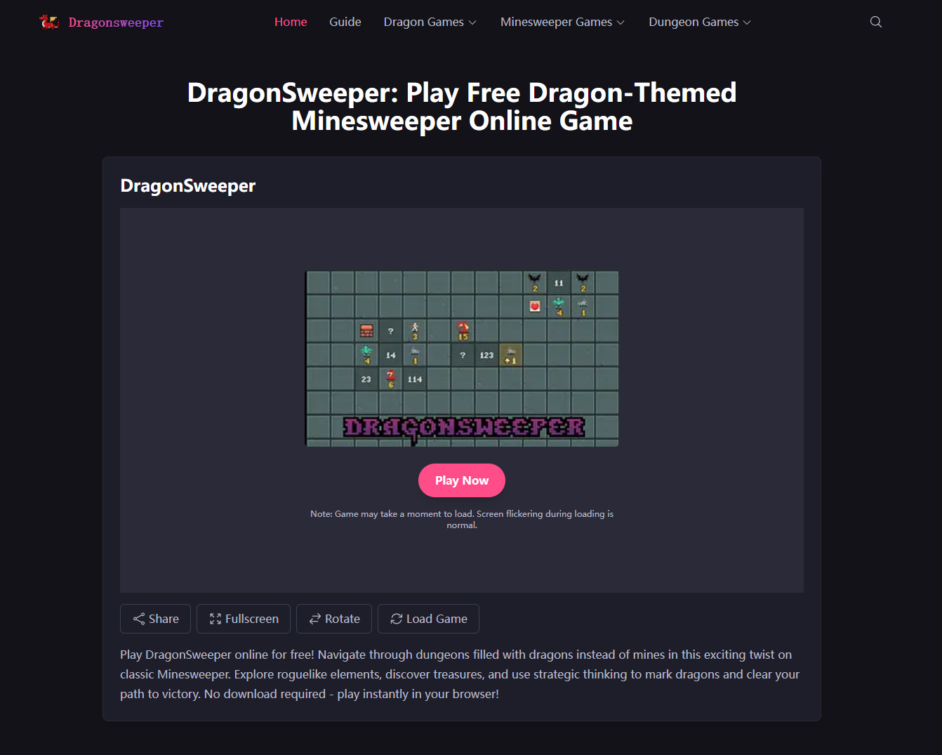 介紹:dragonsweeper是一款roguelike的掃雷遊戲,像素風格,是經典遊戲掃雷Minesweeper的變體。網站也收集了提供其他掃雷遊戲變體,經典永不過時。