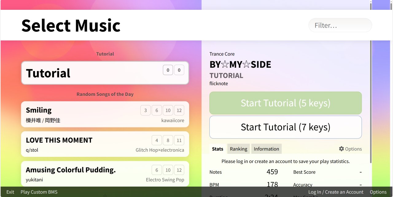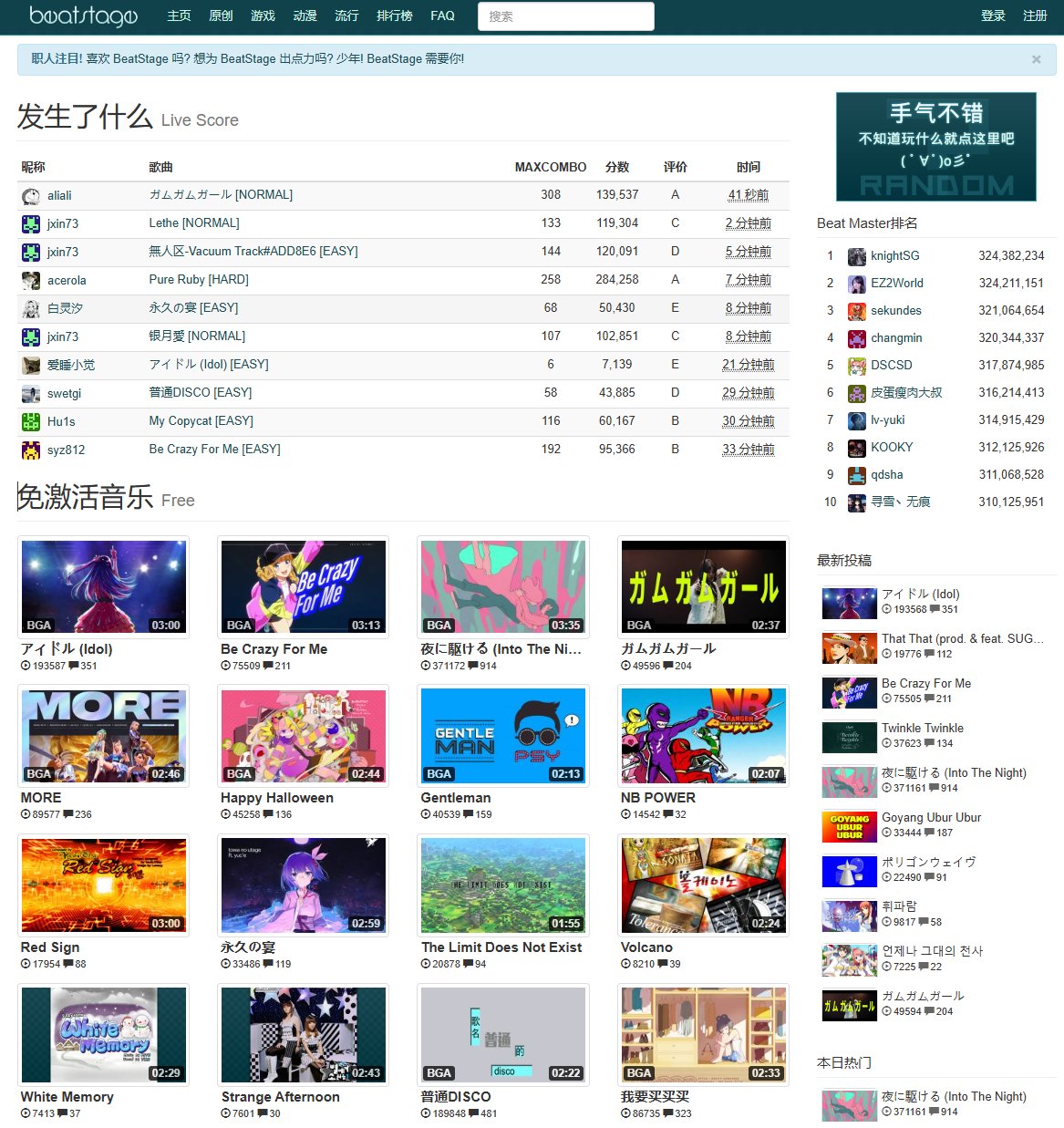 介紹:開放式音樂遊戲網頁beatstage,可以上傳你自己做的音樂,也可以遊玩大家上傳的的音樂,通過鍵位來完成一首首曲子。
