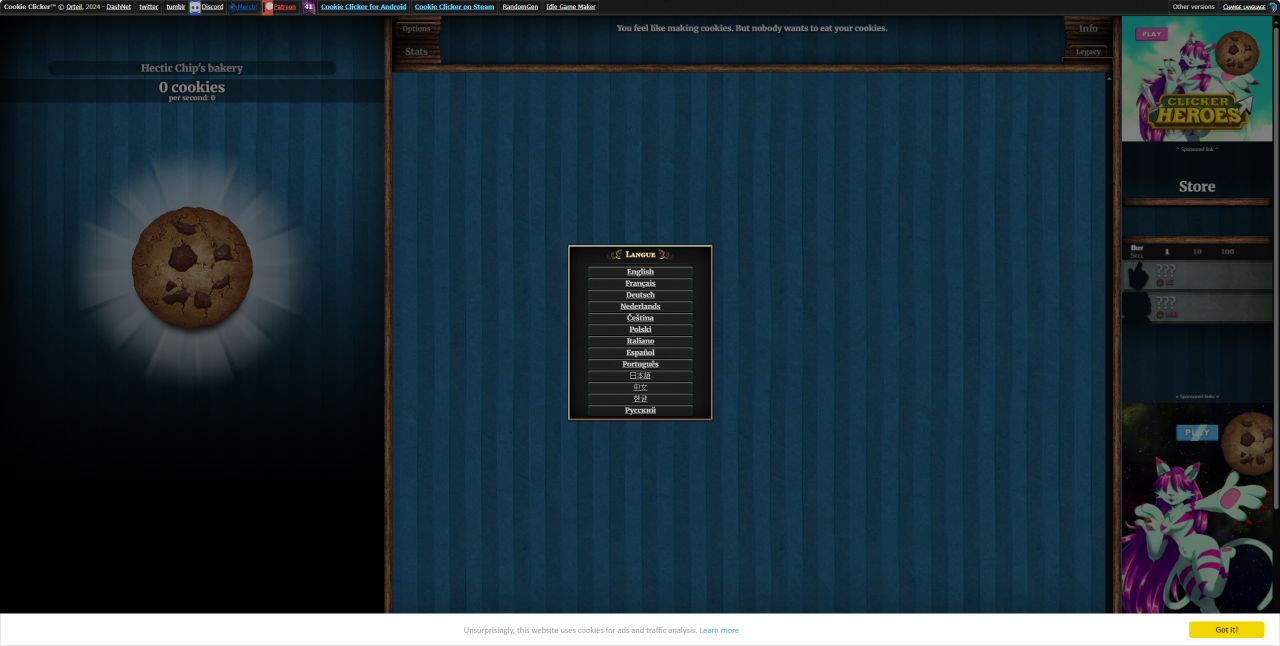 介紹:放置類遊戲餅乾點點樂網頁版,無聊時可以打開網頁點點點,網頁版可以使用cookie來保存你的遊戲進度。瀏覽器中的cookie的概念和遊戲主題非常符合,不愧是開發者的巧思。