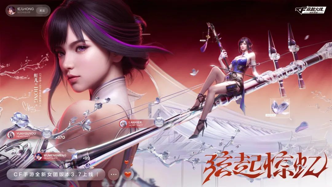 3月7號的新版本中,新角色“虹兒”,更是凸顯了CF手遊在國風文化方面的深度挖掘。像以往一樣,製作組並沒有粗暴的移植傳統文化,而是將國風文化、經典樂器二胡與時尚元素完美融合,在保證角色能被更多年輕玩家接受的情況下,傳遞國風與民樂的魅力。