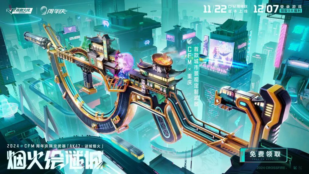 和重慶文旅深度聯動,CF手遊推出了“未來李子壩”和“火鍋城”兩張地圖,城市景觀深度定製武器“AK47-謎城煙火”,更是大膽融合了黃色法拉利、穿樓輕軌等地標性設計。哪怕是從未到過重慶,也能從遊戲中感受到這座“賽博8D城市”的風采。