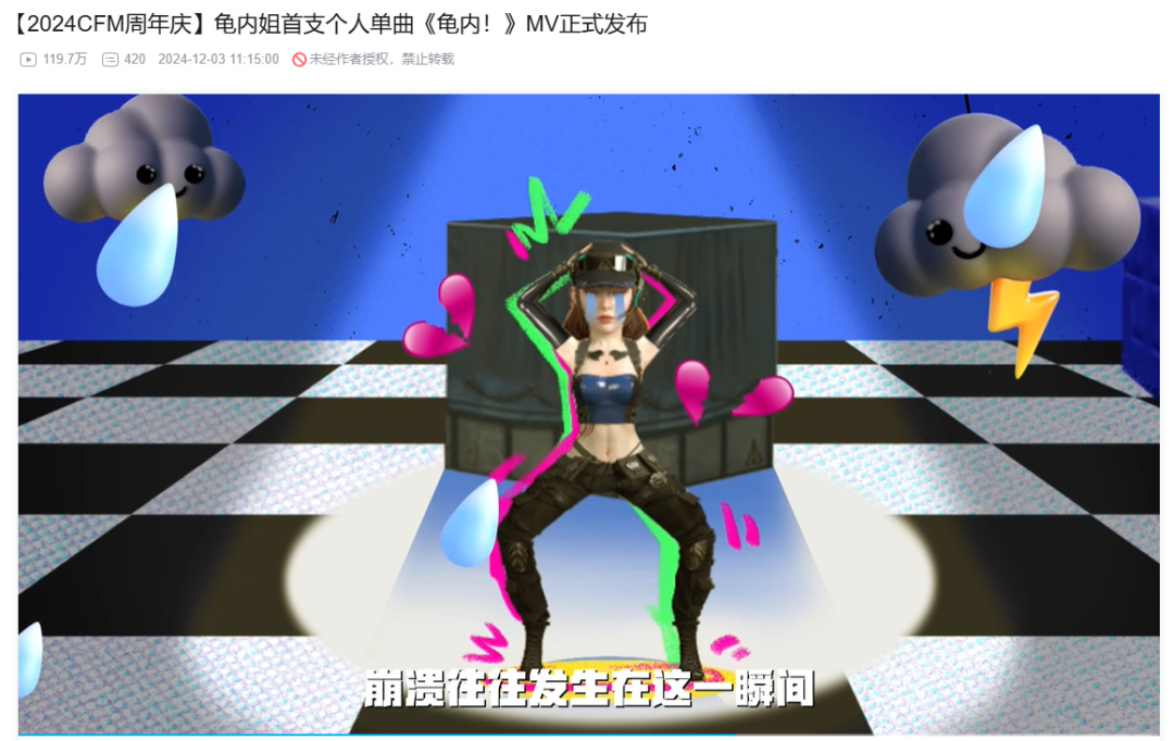 在一批“熱心”的玩家和官方這個最大的鬼畜作者幫助下,龜內姐開始走上人生巔峯,頻繁出現在各種視頻裏,讓CF手遊沾了光,獲得了不少的曝光。