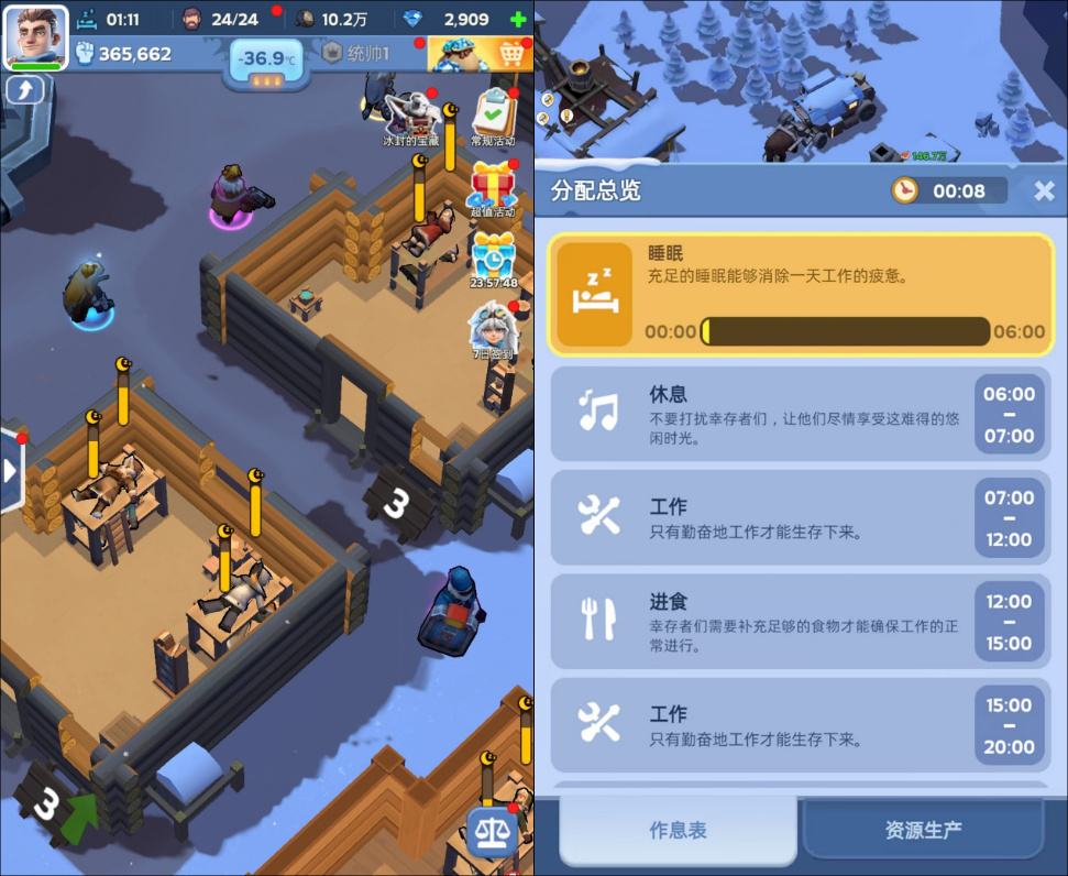 和《冰汽時代》一樣,《無盡冬日》也給倖存者製作了一套作息系統