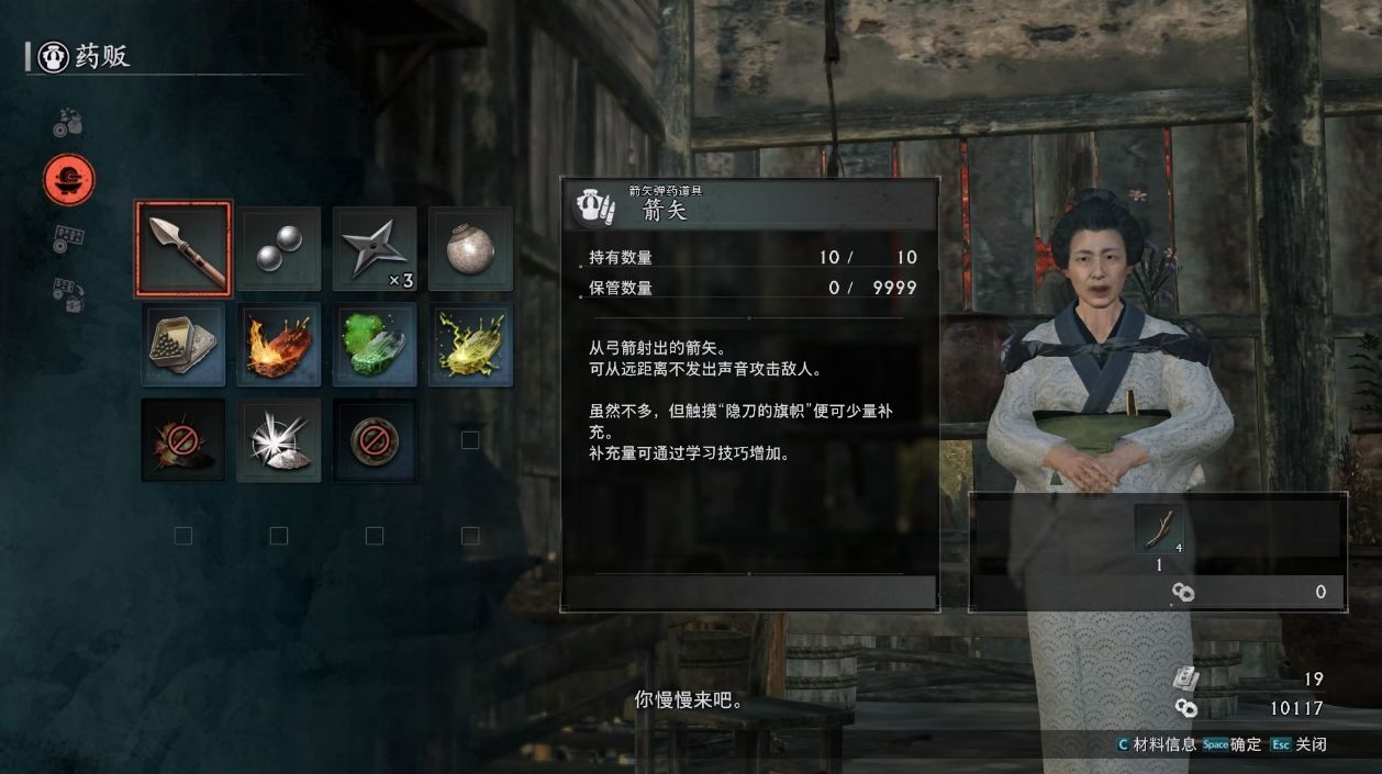 在冒险的途中还设置了各种商贩,每种商贩所出售的类型都各不相同,比如在要药店商人手中玩家就可以购买到各种恢复或增益效果的药剂,同时玩家还可以在这边进行调制,消耗从路边收集的各种材料,制作强化自身的道具以及箭矢弹药。