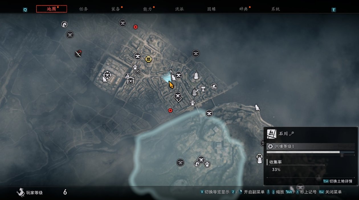 在日本的探索中,主角也会结交到许多志同道合的浪人朋友,完成主线支线剧情可以获取道具以及影响力。之后可以增加与其他人之间的亲密关系,跟别人结为盟友一起进行战斗和冒险。而每片土地也有自己因缘,通过完成相应的事件任务,增加因缘可以解锁该地区隐藏的旗帜,通缉犯以及宝物的重要位置信息,玩家可以把这个功能用于确认当前区域的收集情况,这里会将玩家完成和未完成的收集内容都展示。
