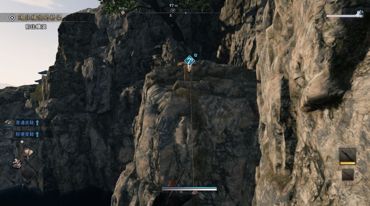 之后玩家还会解锁更多的赶路神器,像是滑翔翼,通过沟索挂住房屋顶上的房檐在拉起的瞬间使自己腾空,并借助向上的冲力展开滑翔翼在天空中滑行,玩家可以借助这个方式飞到海上的货船中搜刮隐藏的宝箱奖励。