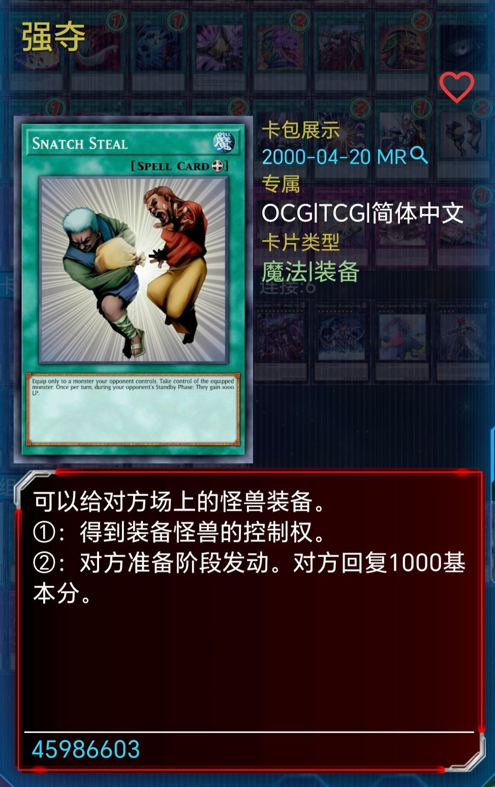 “你的,就是我的,我的,還是我的。”只要此卡被裝備在場上,持續獲得對手怪獸的控制權,徹底的牛🐮,作爲代價是羞辱性地讓對手回一千血。