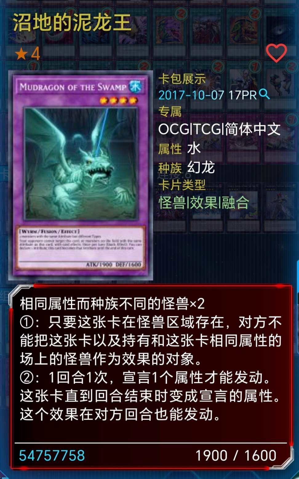 “兄弟…想超你”。十分霸道的效果,甚至能以對手場上的怪獸爲素材來融合召喚,「共命之翼 迦樓羅」與「沼地的泥龍王」爲其常用配件,應對它時需警惕自己場上的怪獸種族•屬性。