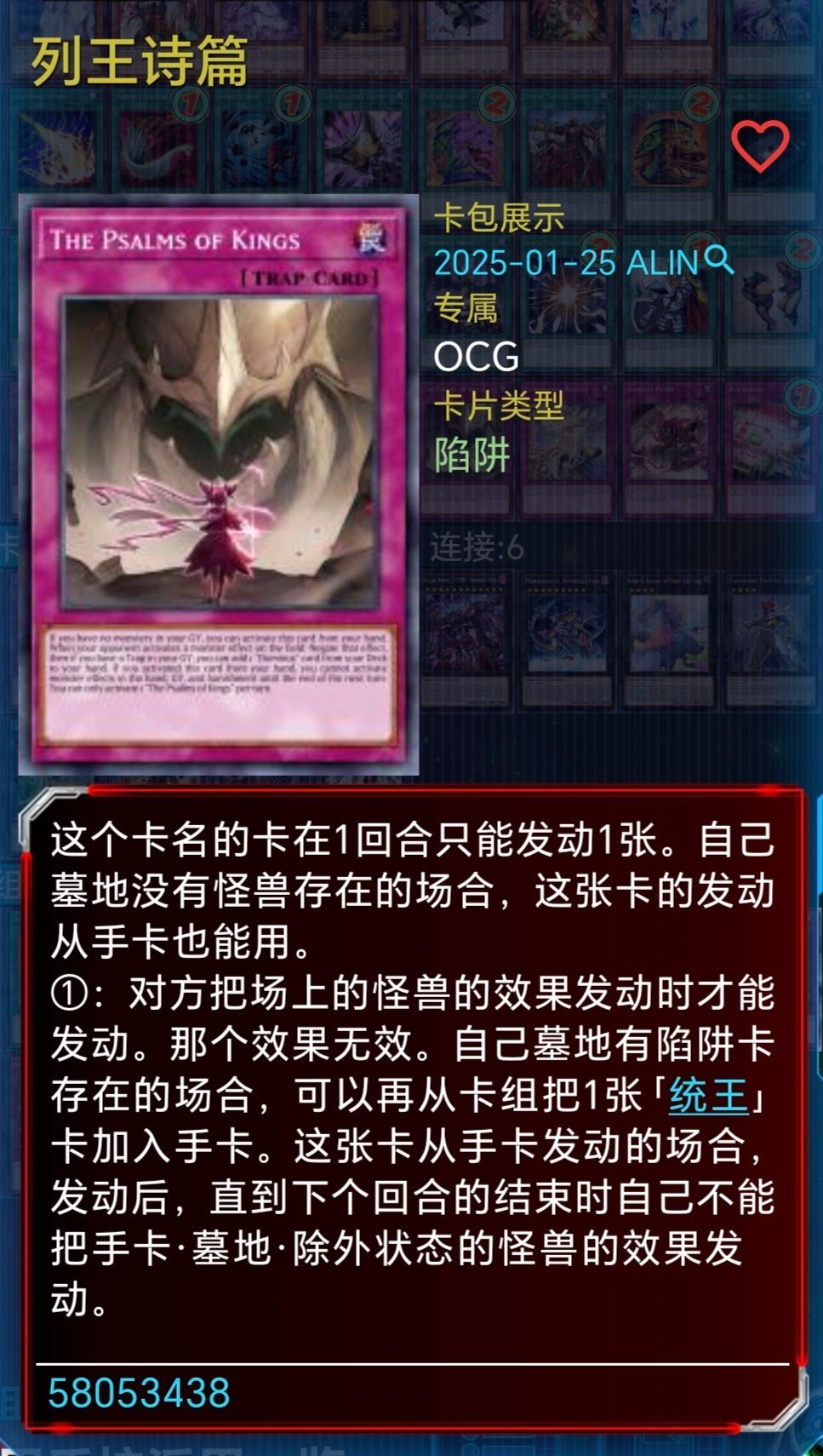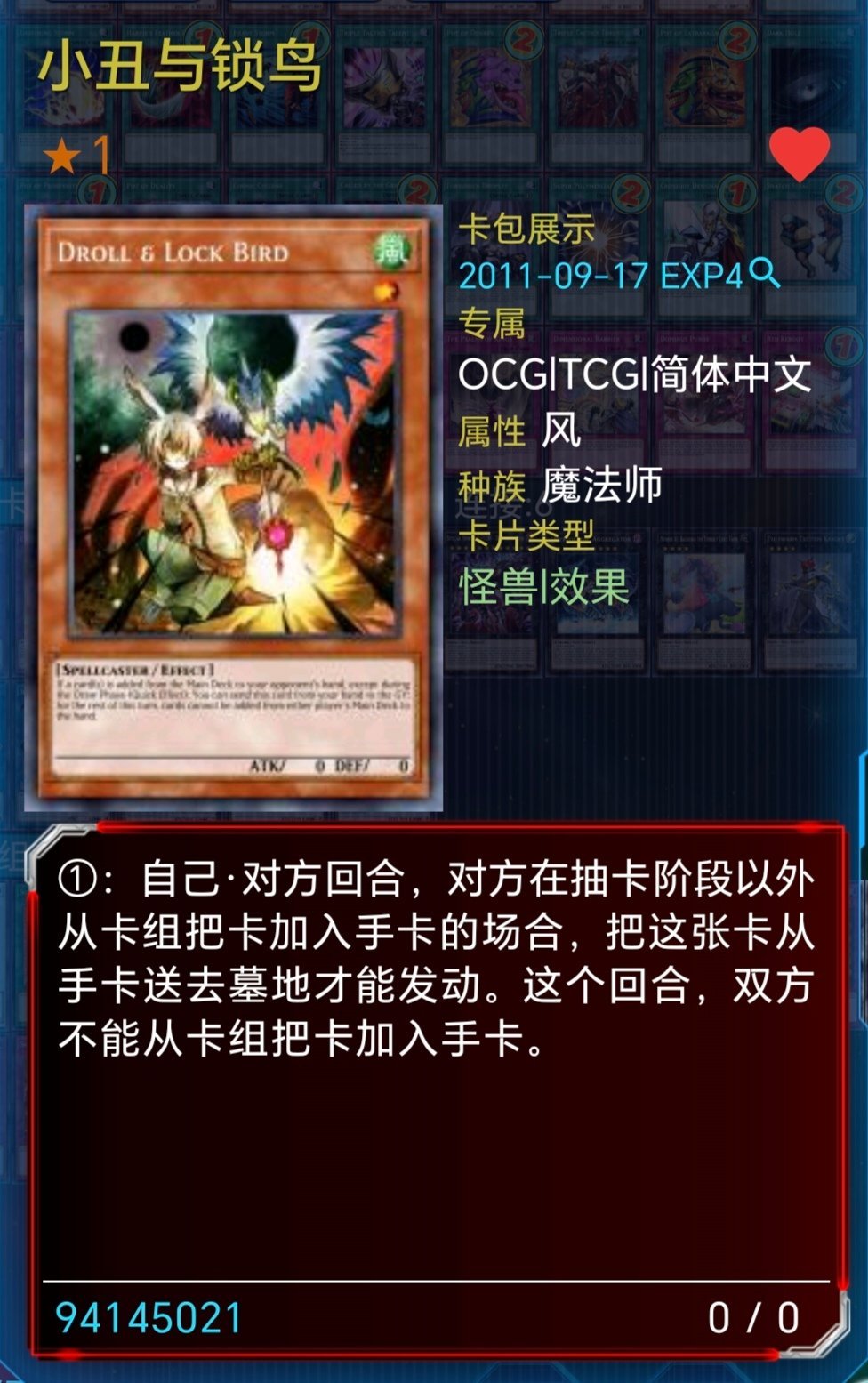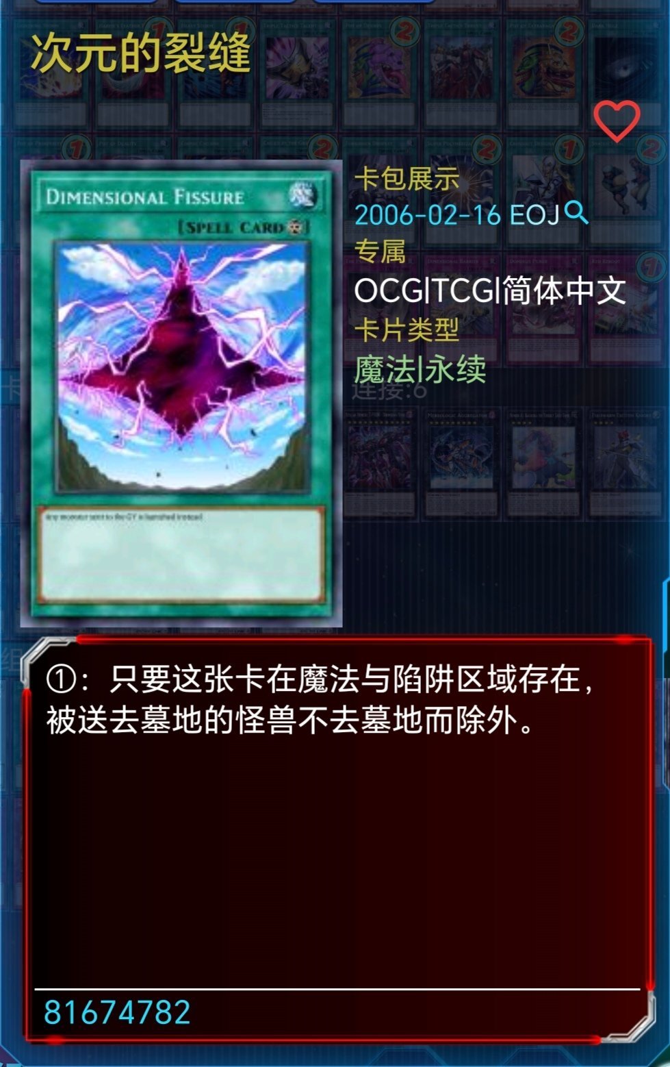 不錯的手發陷阱,效果與泡影似而不同,雖然沒有本家字段,但是目前本家唯一具有檢索能力的卡片,需要注意很強的自肅,一般beat向的卡組纔會選擇使用。