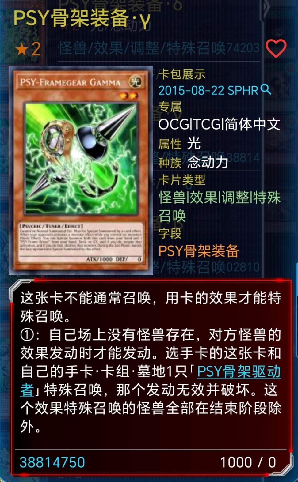 一位同調次元的熱心盒友提出補充,很不錯的一個系列,「PSY骨架裝備·γ」只是此字段其中一員,還有針對其它效果的「PSY」卡片,需要注意此係列作爲手坑都需要綁定一張指定“凡骨”(通常怪獸),但如果卡組能適配就可忽略此問題。