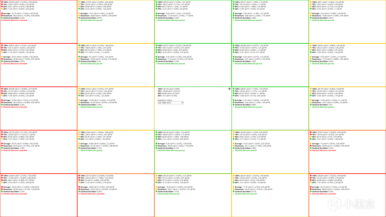 由於他的最大亮度實在不高,也沒有測的必要了。不過呢,HDR下左下角亮度來到308nit,亮度偏差來到了120nit。雖然最大偏差值較高,但是整體來說,和競品是差不多的。