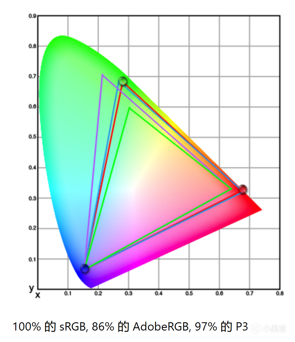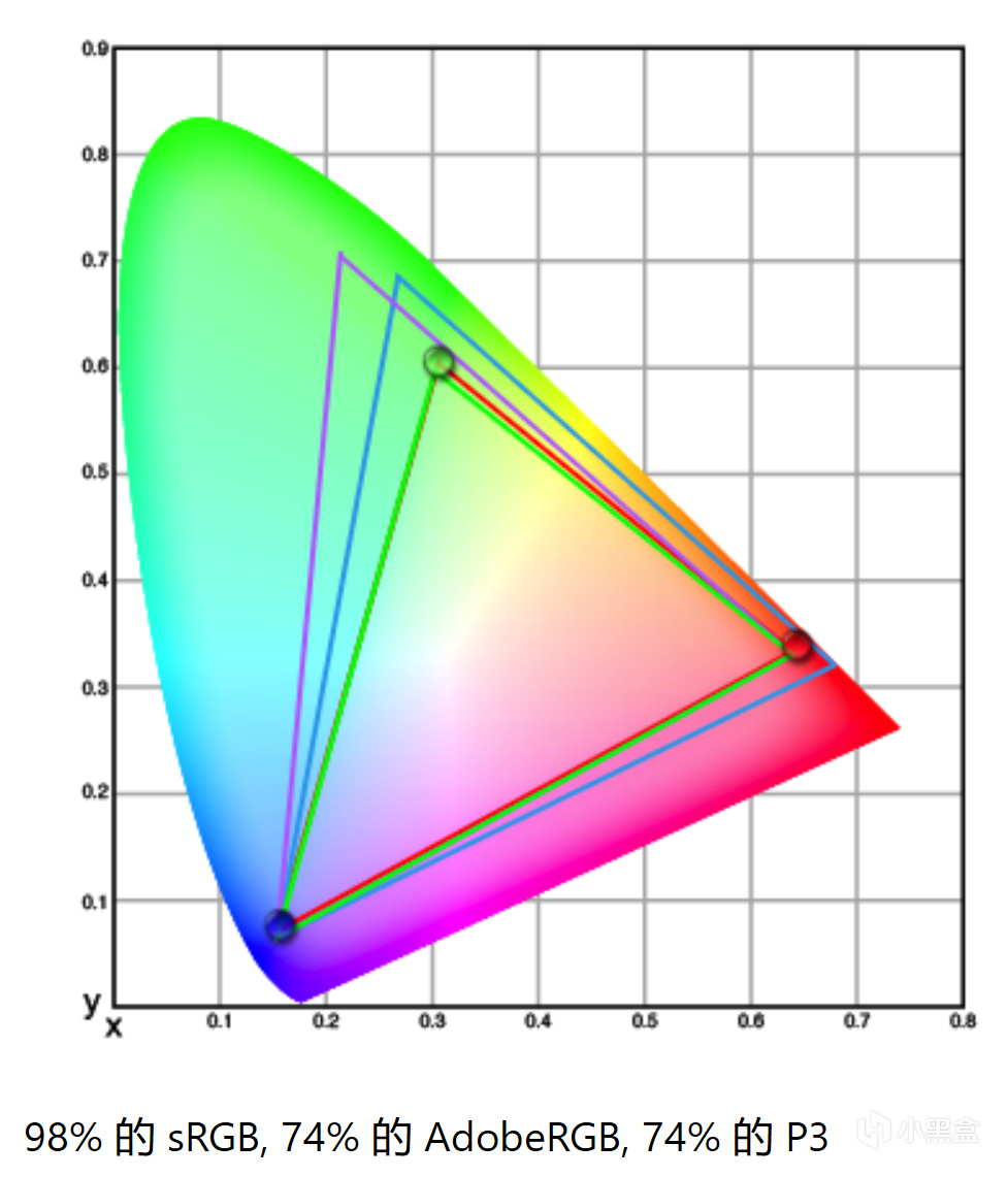 這臺機器只做了sRGB色彩空間。默認達到97%的P3色域覆蓋,色準爲1.29