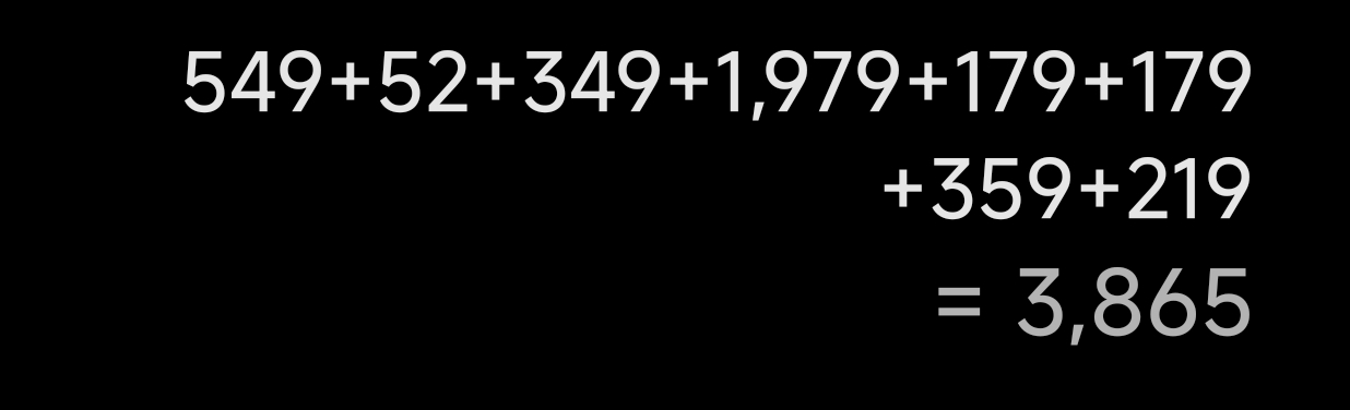 最後綜合下來一共是💰3865。當然,這是粗略計算的結果,實際成本可能比這要低。