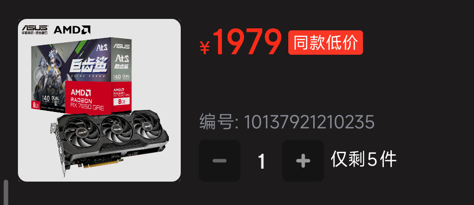 再看顯卡,華碩7650 GRE,💰1979,咱暫且不論這顯卡本身值不值這個價,只討論整機。