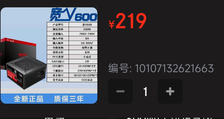 最後看電源,大水牛 寬v600 500w,💰219。這又是個啥牌?