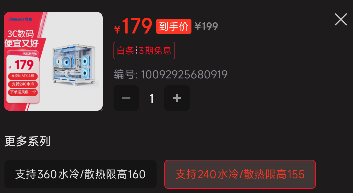 硬盤和機箱也是沒在各平臺找到配置單中匹配的配件,他硬盤甚至不敢寫型號。故按隔壁可能相近的產品來計算。機箱💰179,硬盤💰359。