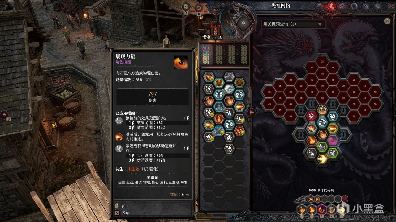 本作打造了一个叫做先祖网格的系统,其由一些六边形网格组成,玩家可将旅程中获得的技能和强化效果等内容放入其中,来创造不同的战斗风格。