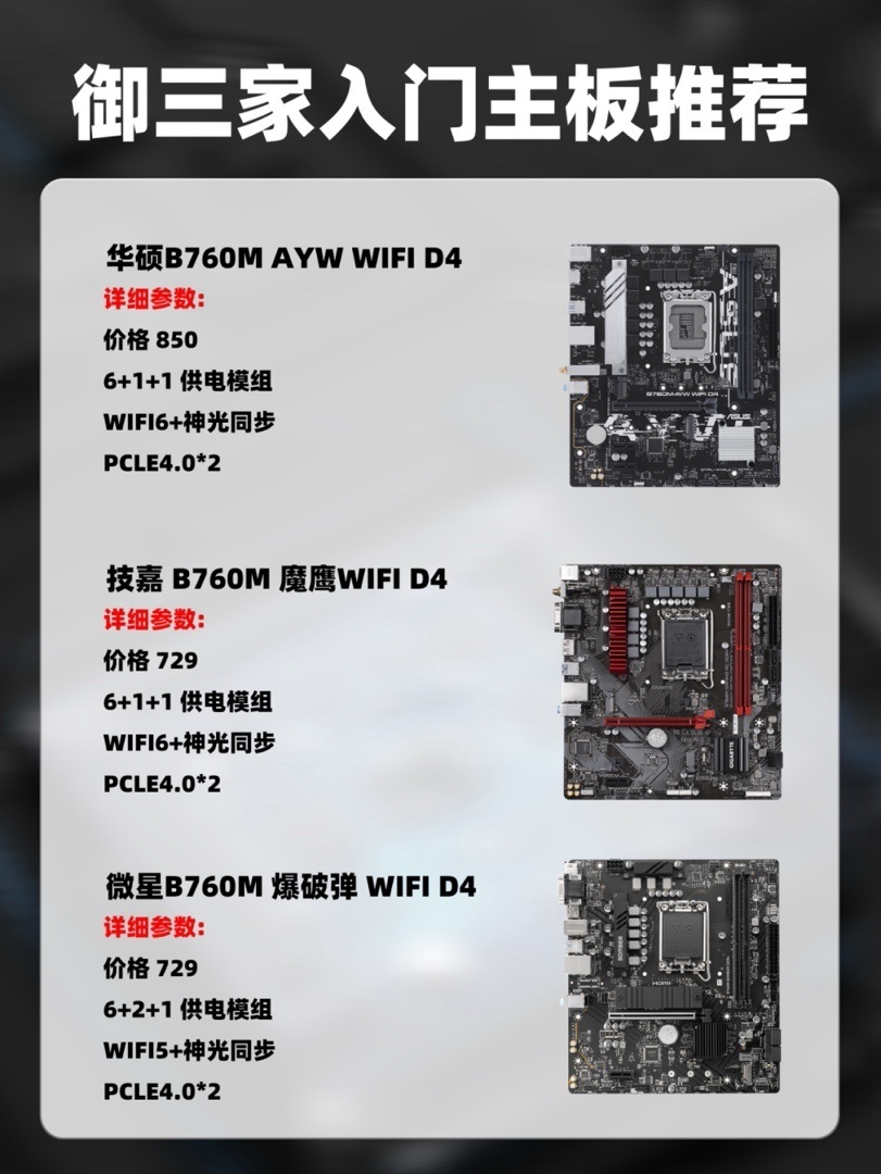 适合入门级别的定位是能用、够用、供电最弱。适合入门的i3、i5、12100F、12400F