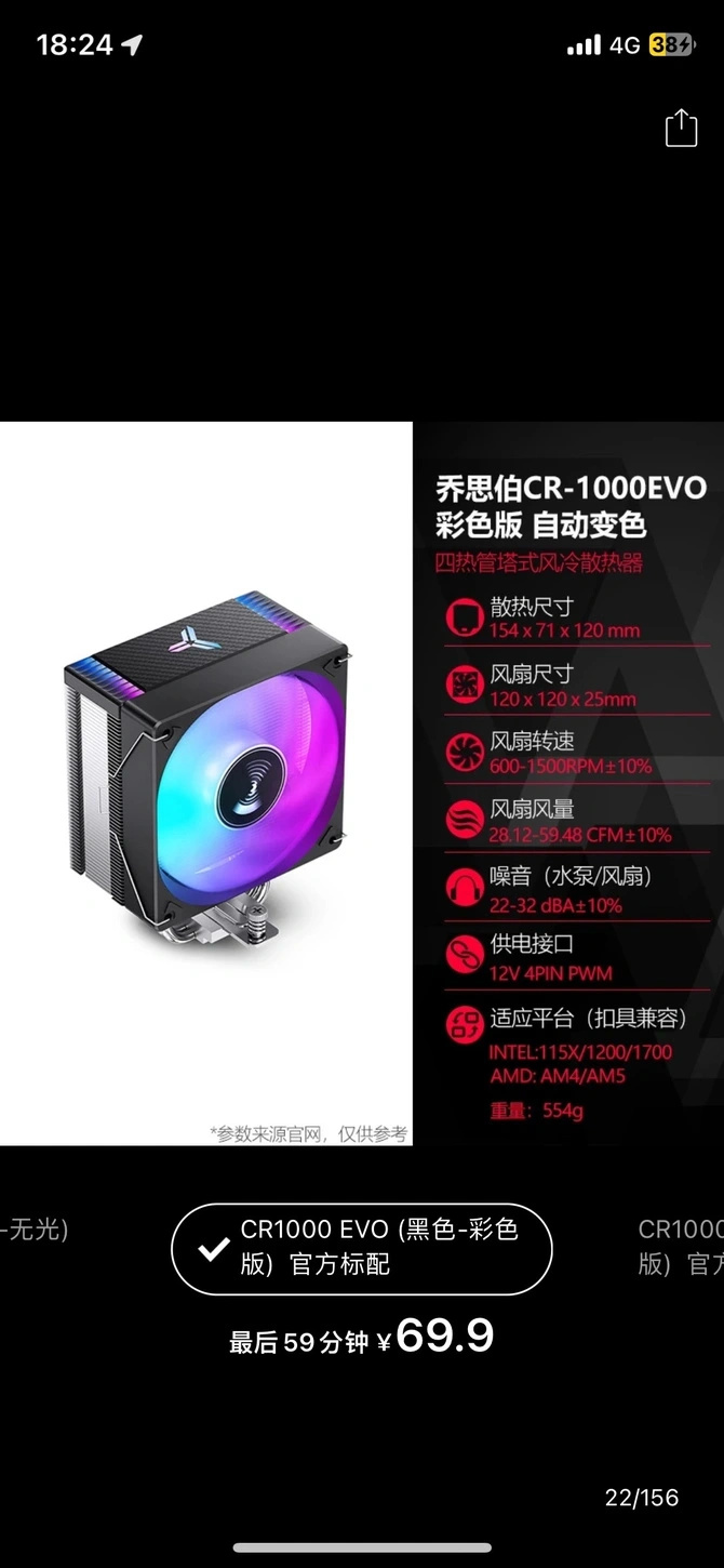 喬斯伯cr1000evo 70元 單塔單12cm風扇四銅管