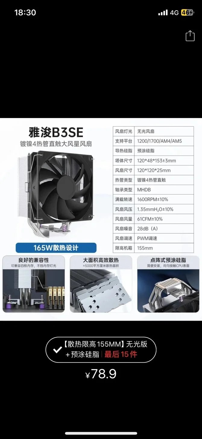 雅駿b3se 79元 單塔單12cm風扇四銅管