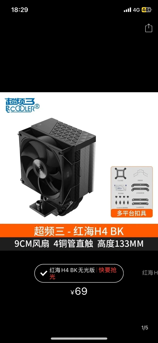 超頻3紅海h4bk 69元 單塔單12cm風扇四銅管
