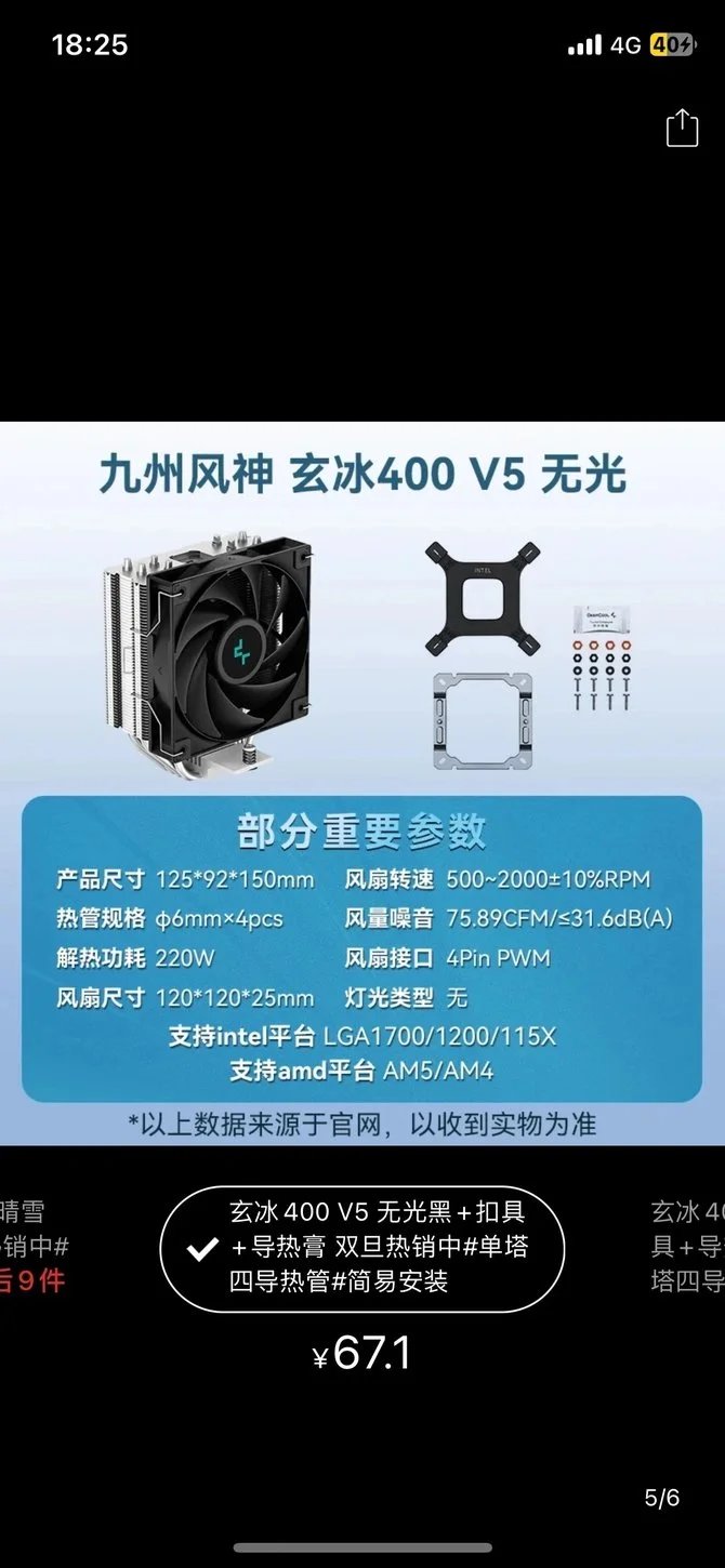 九州風扇玄冰400 v5 67元 單塔單12cm風扇四銅管