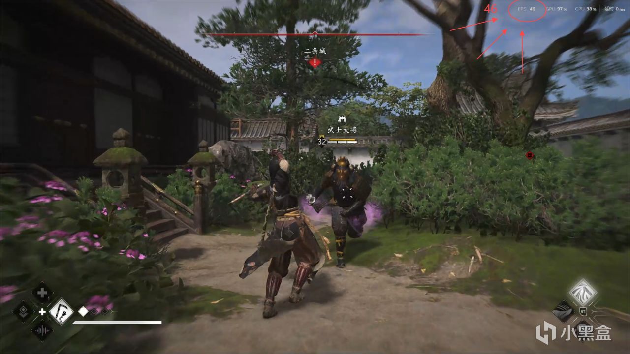 首先是小奈的战斗,这个场景是打一个BOSS,进入黑白风技能效果的时候可以看到帧数还算稳定,出来打斗过程会出现一点掉帧,总体上实际上都是在30-40左右波动,人多的时候可能只能30左右那样子!