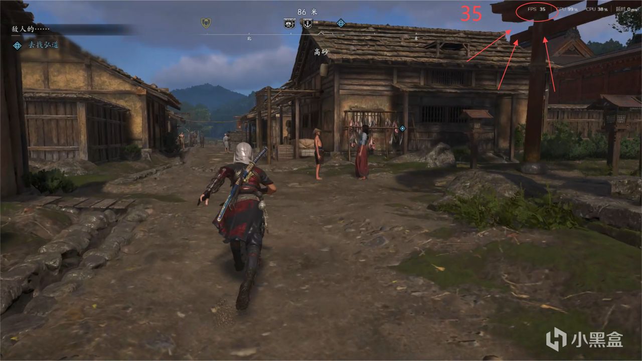 一般来说周围建筑人物群体越多,就会越卡,我这边大概2K的画面进到小镇大概就是30-37帧左右,感觉起来不会怎么很卡顿!有时候会人很多到29!
