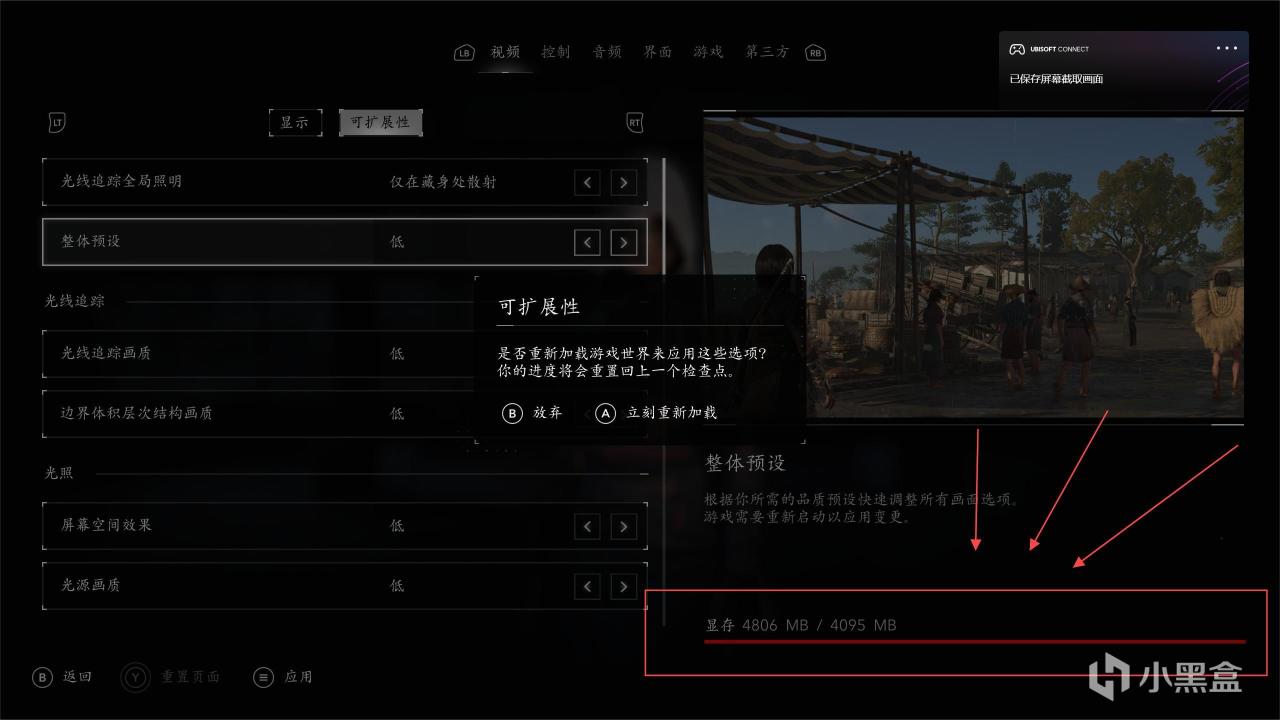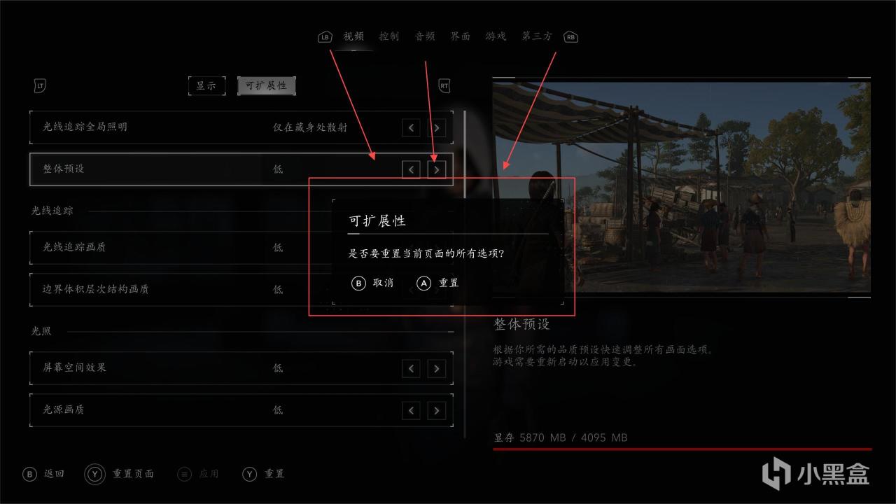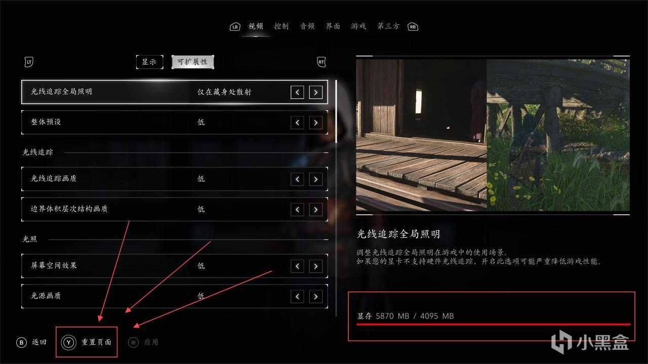 这是一个关于显存占用的问题。我这里通过游戏设置中还原他的扩展性初始设置,突然就占用少了1G,我也不知为啥!然后设置界面UI也变了!