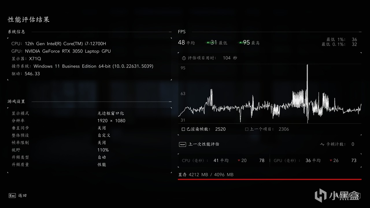 以上便是大家最关心的优化问题的一个测试吧!因为我刚好是3050笔电4G显存玩的游戏,所以也算是给大家一个反馈哈哈!