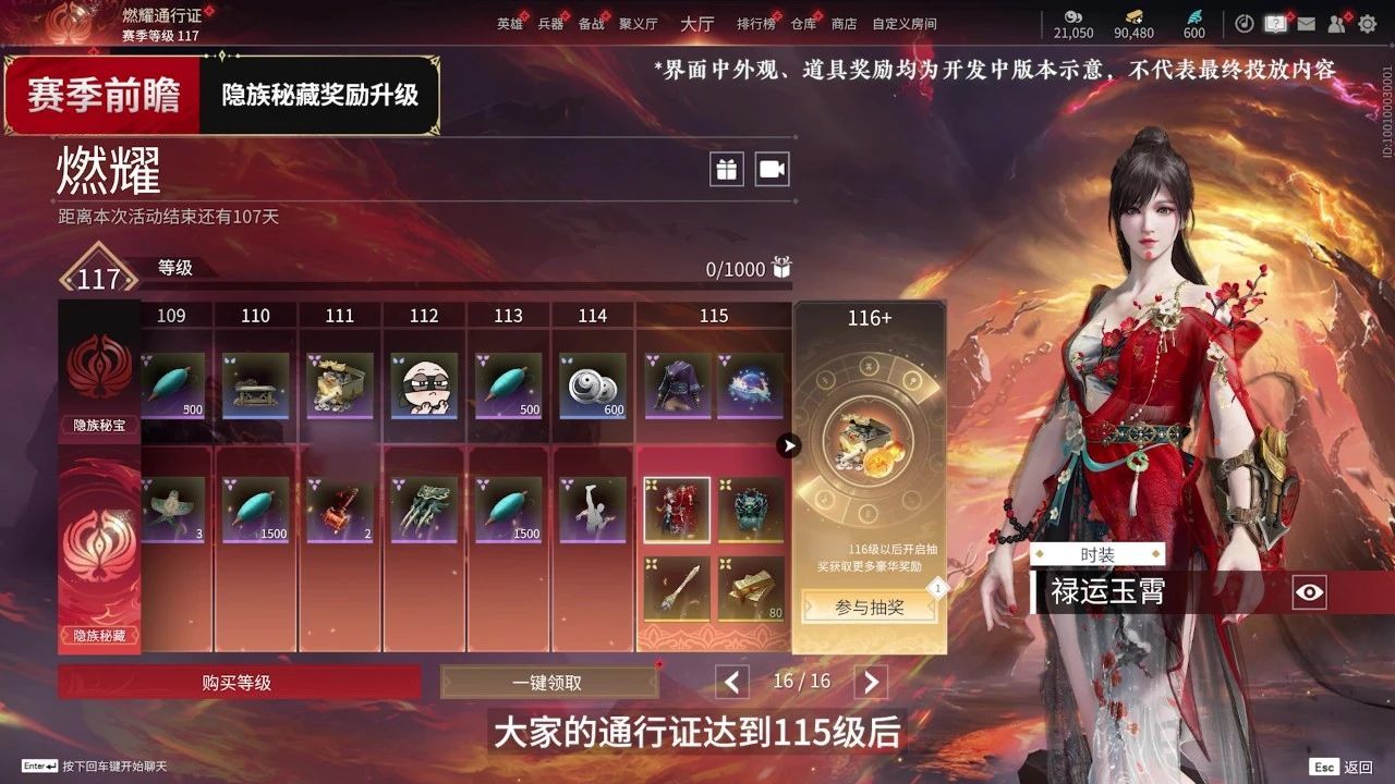 從S16燃耀賽季起,隱族祕藏達到115級後,可在解鎖原有每個等級獎勵的基礎上,額外獲得一次抽獎機會。有機會抽到花露、寶箱等多重道具好禮。