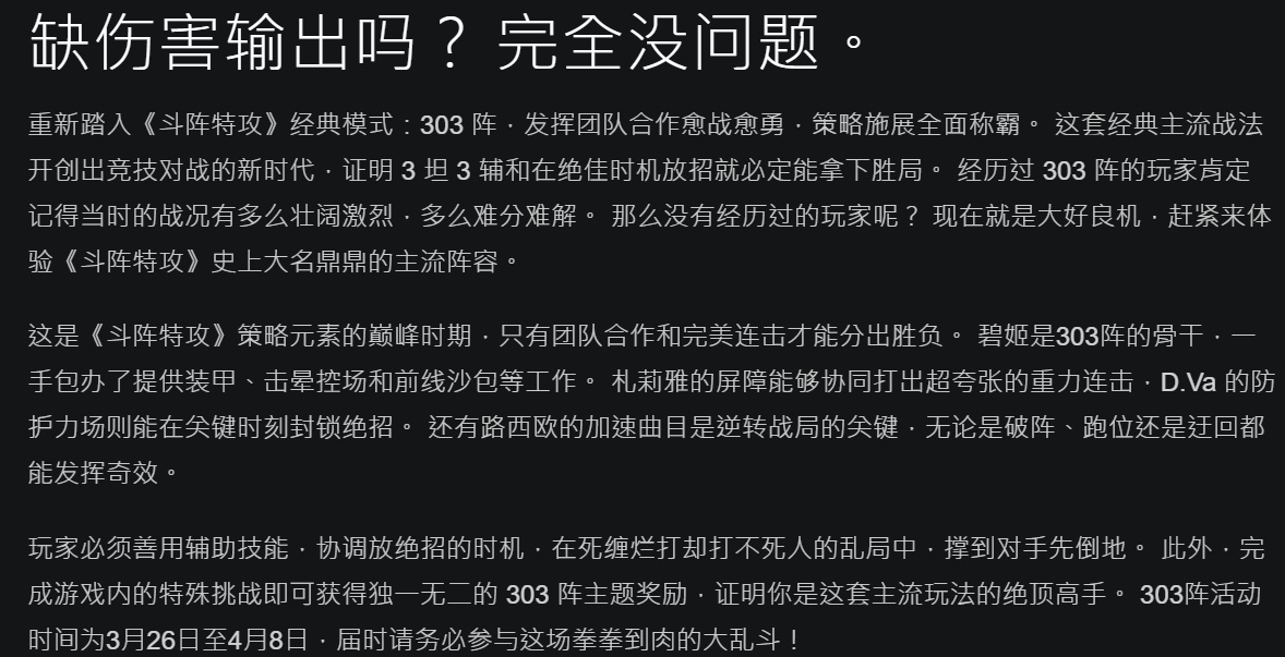 該英雄將在3月19日(國內3月20日)公佈角色預告片限時,3月20日(國內3月21日)公佈角色故事漫畫,3月21日至3月24日(國內3月22日至3月25日)“芙蕾雅”限時試玩將在遊戲中上線,屆時玩家可以搶先體驗到這位新英雄。