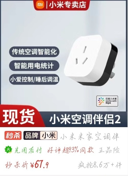 2、米家空调伴侣 2(我没用过这个,评价是我在网上看到别人说的,如果说错了,我先道歉了)