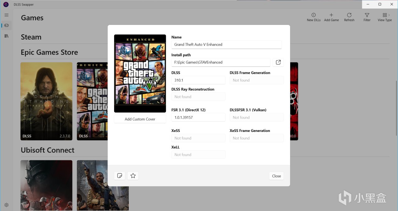 我们下载解压之后运行DLSS Swapper.exe,找到你想要修改的游戏,如果没找到可以点右上角Add Game手动添加游戏目录