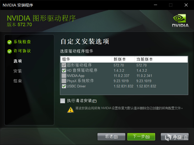 解决方法也很简单,在NVIDIA官网下载驱动,然后勾选清洁安装选项即可